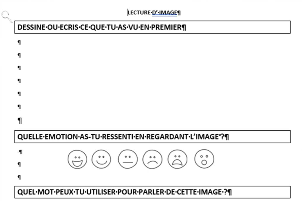 Cette explication est tirée du Guide « Repères pour l’éducation à l’image » à destination des enseignants, des formateurs et des éducateurs. Il est disponible gratuitement en ligne, a été produit dans le cadre du projet "Interpréter les images choc en temps de crise sanitaire" (Ministère de la Culture, Crem) et sert d’outil dans le cadre du GTNum FeelNum. Ce dispositif fait collaborer universitaires et enseignants autour des compétences émotionnelles des élèves, notamment face aux images. Au sein de ce groupe de travail, deux enseignantes de l’école primaire Aprinivilla à Avrainville ont accompagné leurs élèves à devenir des « explorateurs d’image ».